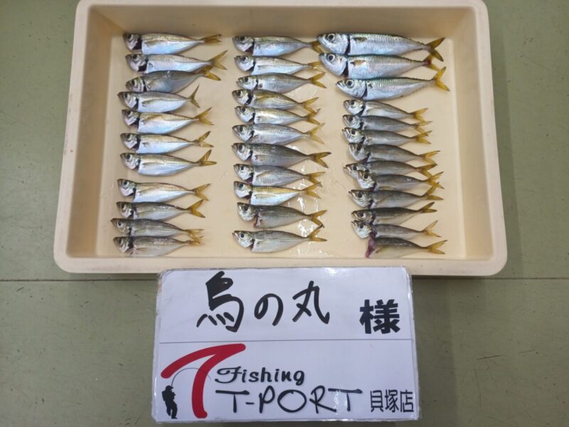 R7.9.30(火)貝塚人工島 鳥の丸さん アジ 13~14cm 32匹 サバ 17~20cm 3匹 釣り方;サビキ釣り エサ;アミエビ