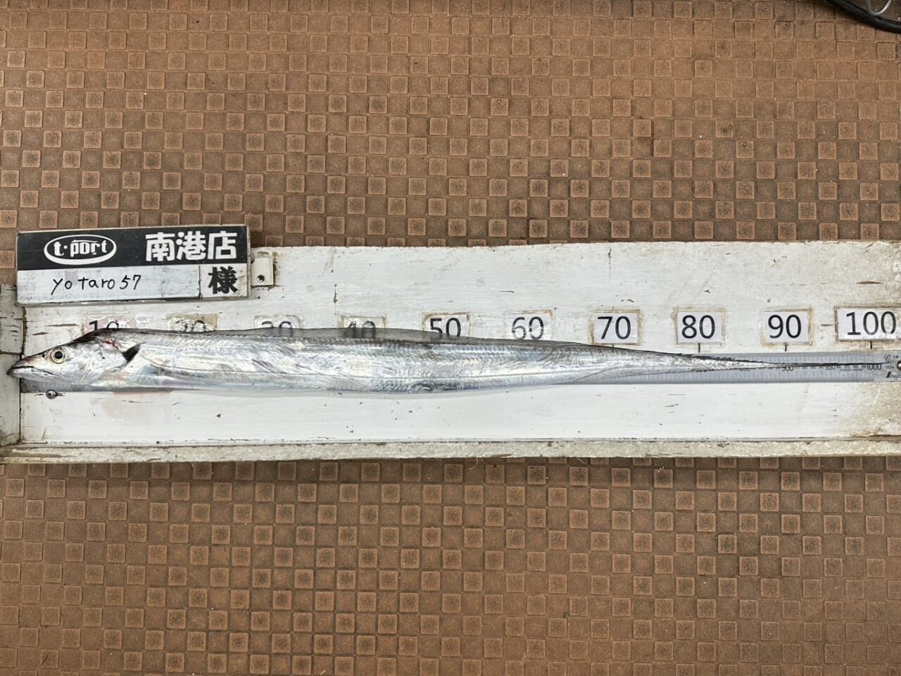 令和7年10月18日(土)紀北 yotaro57さん タチウオ 102.2cm 1匹 釣り方:引き釣り エサ:キビナゴ 今季タチウオダービー2本目のメーターオーバーのお持ち込みです!