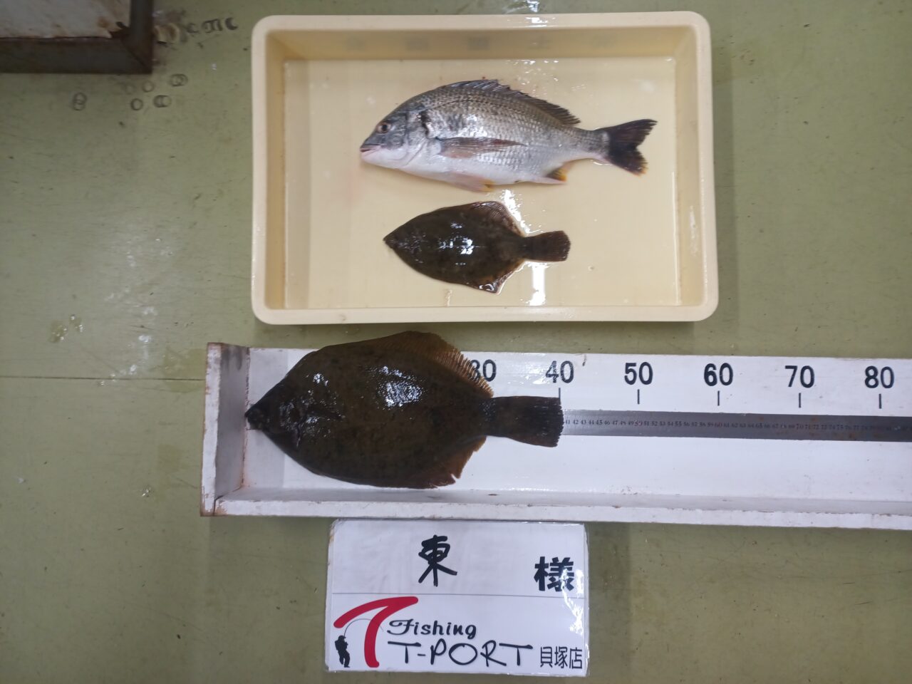 R7.11.15(土) 泉南周辺 和泉市 東さん マコガレイ 40,5cm頭 2匹 キビレ 40cm 1匹 釣り方;投げ釣り エサ;青イソメ