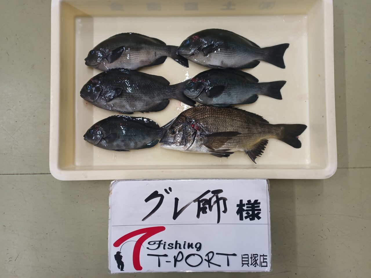 R7.11.19(水) 貝塚人工島 和歌山市 グレ師さん グレ 25cm頭に 4匹 チヌ 34cm 1匹 釣り方;紀州釣り エサ;オキアミ