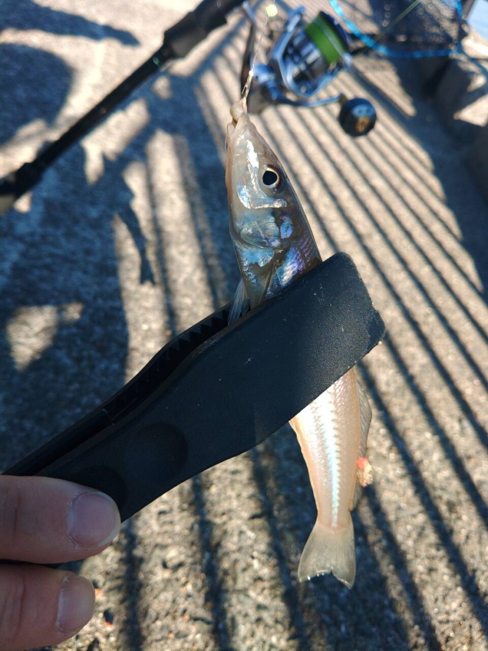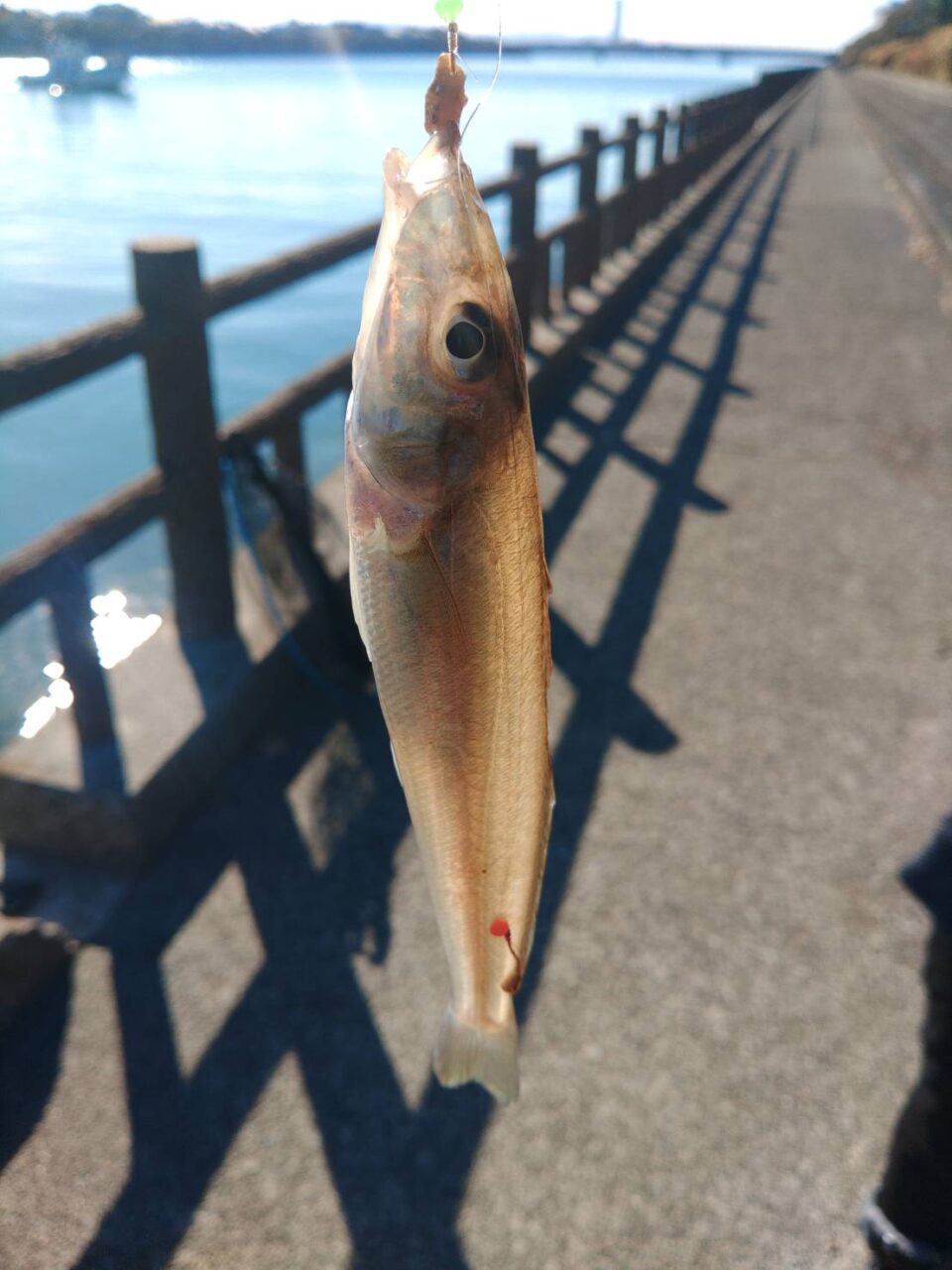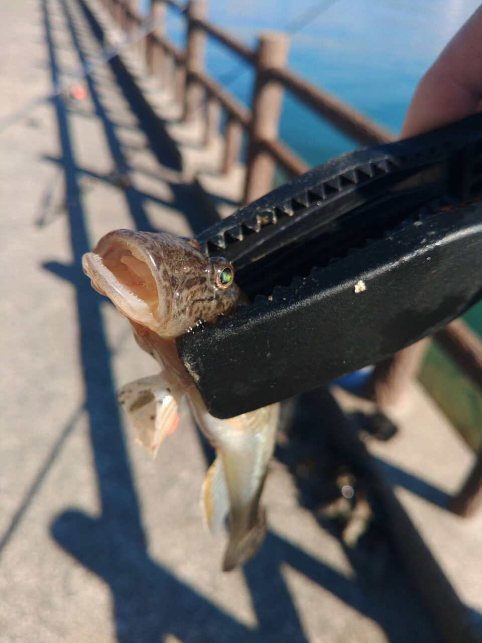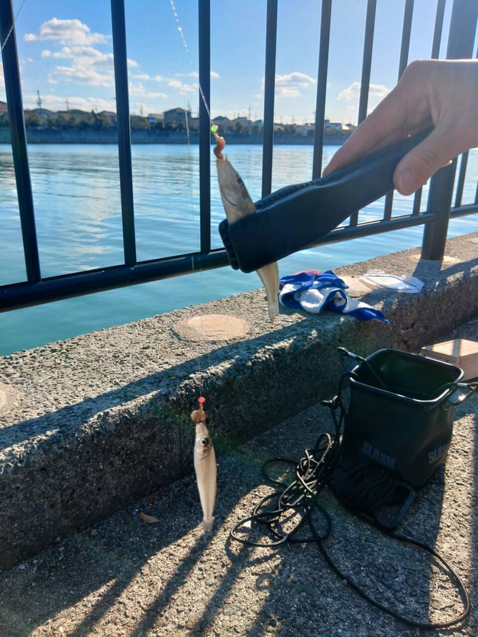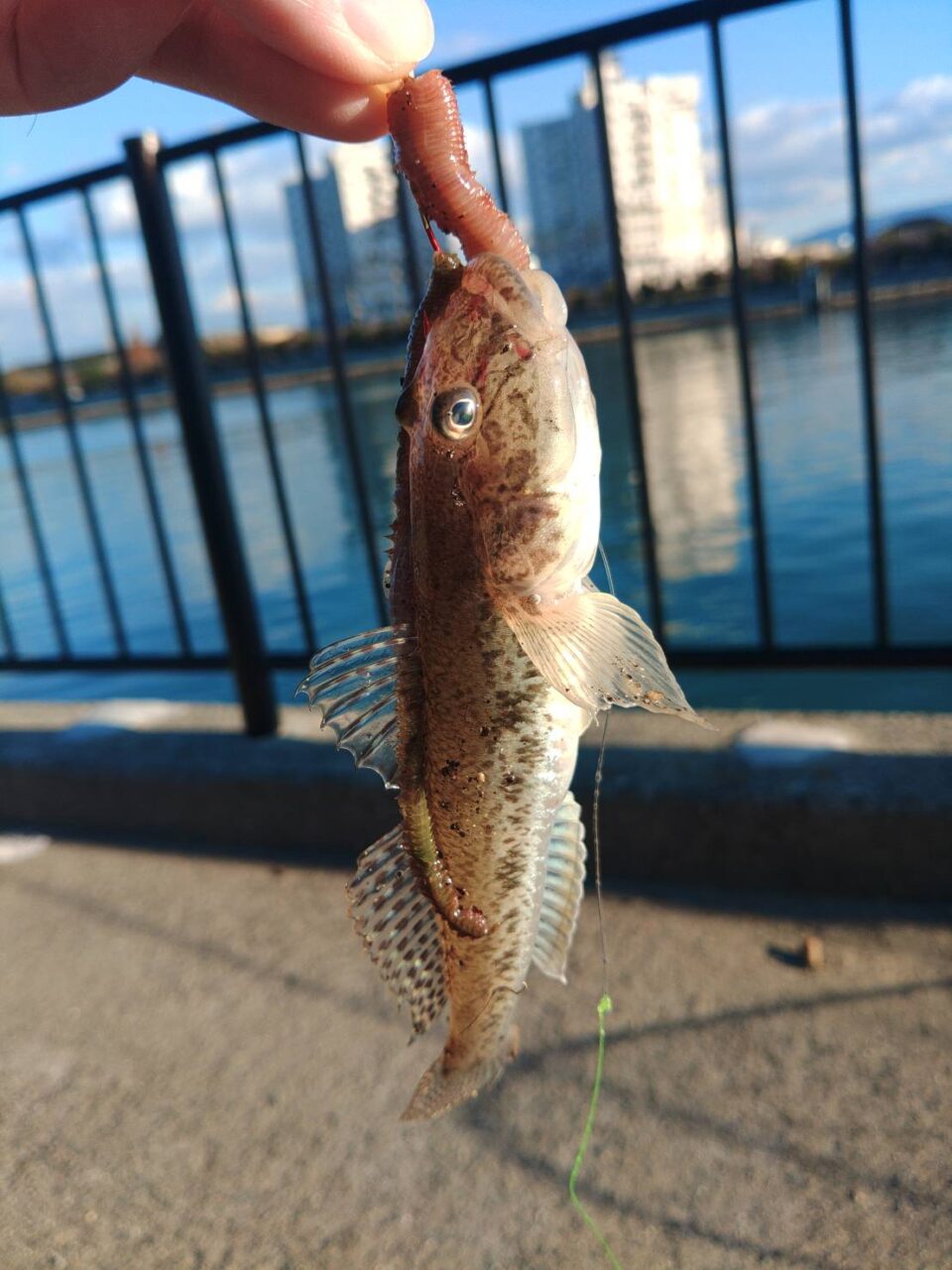 水路の真ん中付近までちょい投げ仕掛けを投入すると、単発ですがキスとハゼ!