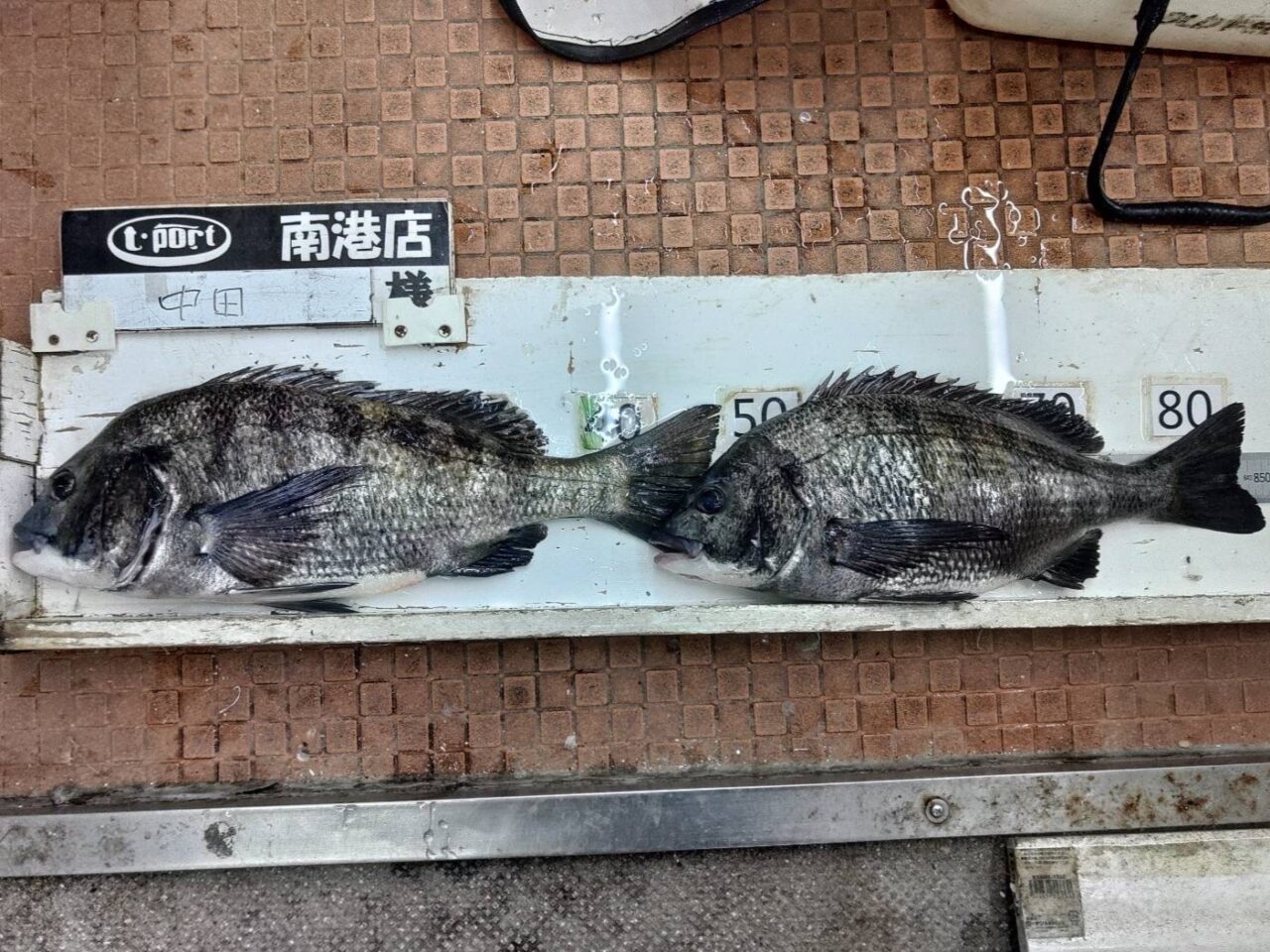 令和8年1月4日(日)南港大橋 中田さん チヌ 47.4cm、42.3cm 2匹 釣り方:フカセ釣り エサ:オキアミ