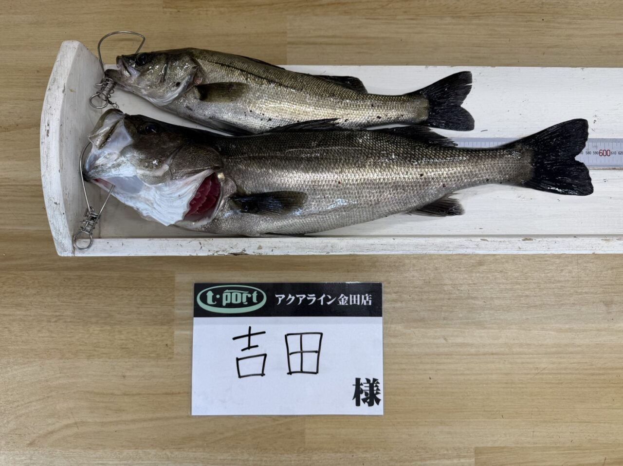 令和8年2月21日(土)袖ケ浦周辺 吉田様 シーバス 43.5cm~59cm 2匹 釣り方:エビ撒き釣り エサ:モエビ