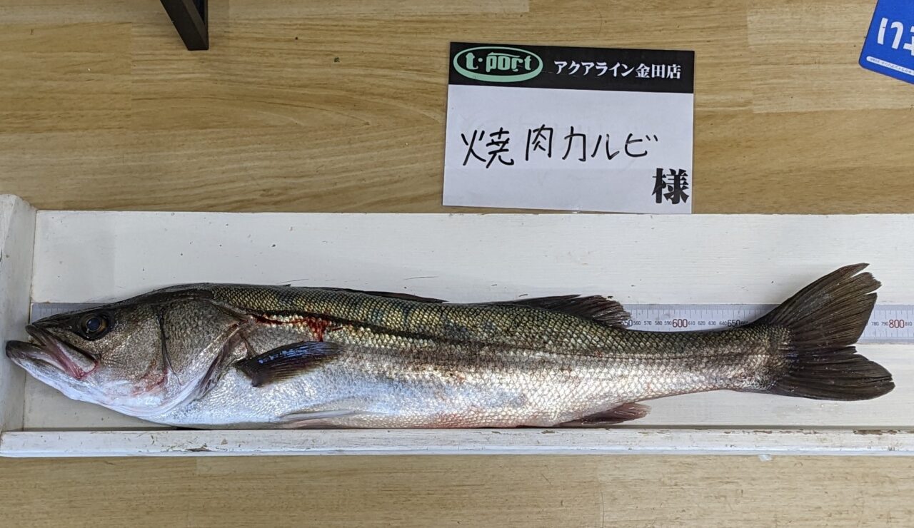 令和8年3月23日(月)館山周辺 焼肉カルビ様 スズキ 78cm 1匹 釣り方:エビ撒き釣り エサ:モエビ