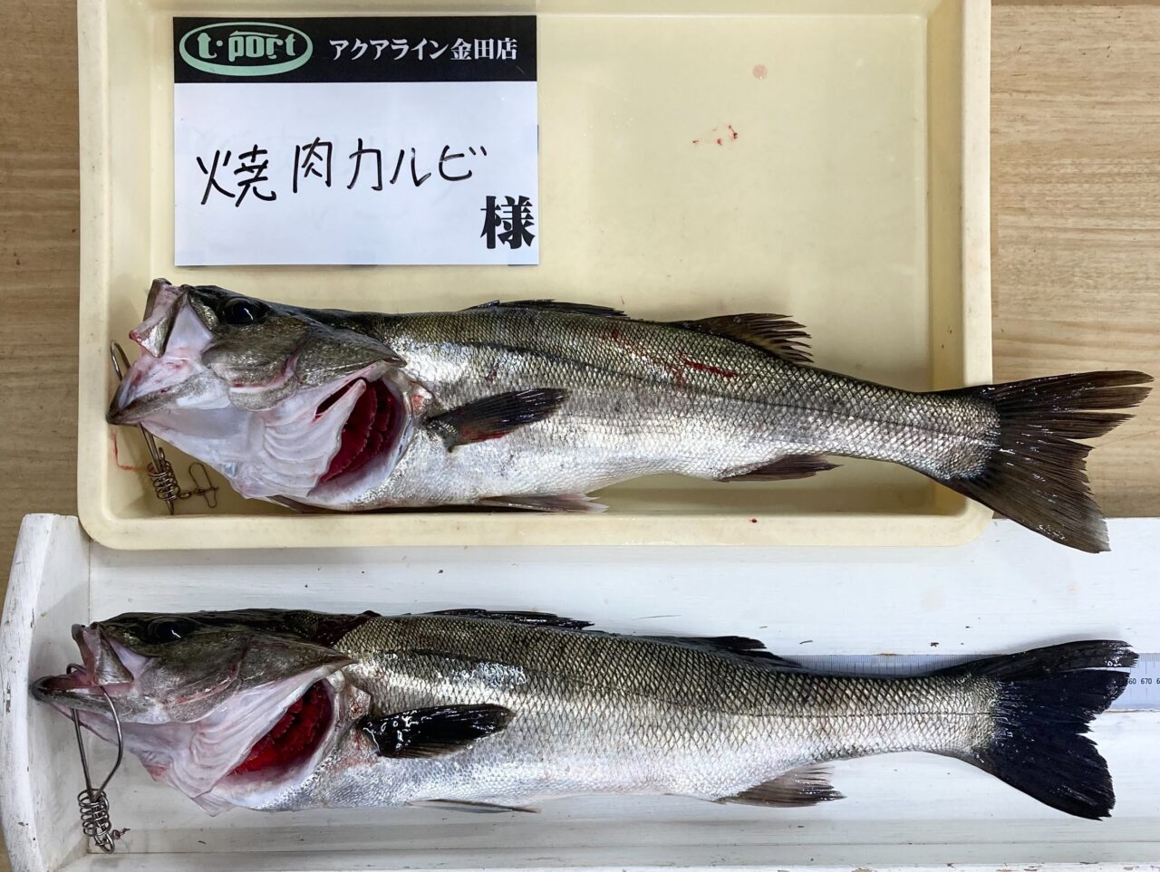 令和8年3月24日(火)市原海づり公園 焼肉カルビ様 スズキ 64~66cm 2匹 釣り方:エビ撒き釣り エサ:モエビ