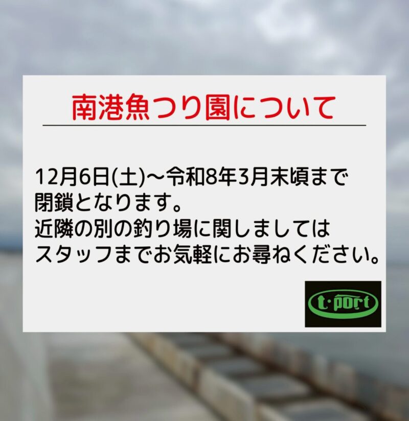 南港周辺に釣行をご予定の方は他の近隣釣り場のご案内もできますのでお気軽にお問い合わせくださいませ。